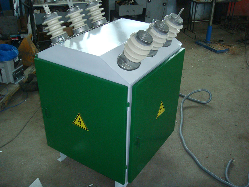 Высоковольтный модуль служит для замера величины напряжения и тока. Конструктивно он представляет собой трансформаторный блок, заключенный в прочный металлический корпус. Количество трансформаторов тока (ТТ) и напряжения (ТН) зависит от способа измерения. Возможно три различных варианта сочетаний трансформаторов: 2ТТ + 2ТН, 2ТТ + 3ТН, 3ТТ + 3ТН.