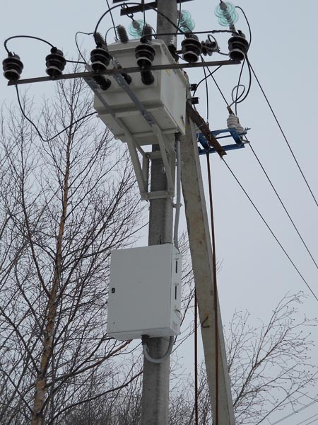 Пункт секционирования столбового типа (ПСС), оснащенный аппаратурой учета, используется для коммутирования линий электропередач, защиты электроцепей, а также передачи данных о потреблении электричества и режимах работ аппаратуры диспетчеру.